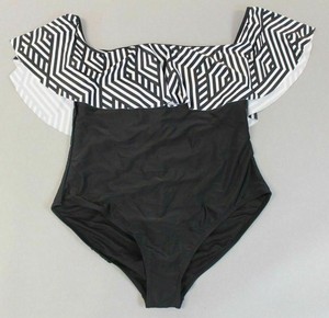 New Boohoo Plus Size 18 Emma Bardot Aztec Print Swimsuit One Piece Black White Ebay