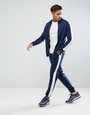 Man Colour Block Hooded Tracksuit With Tape Boohooman