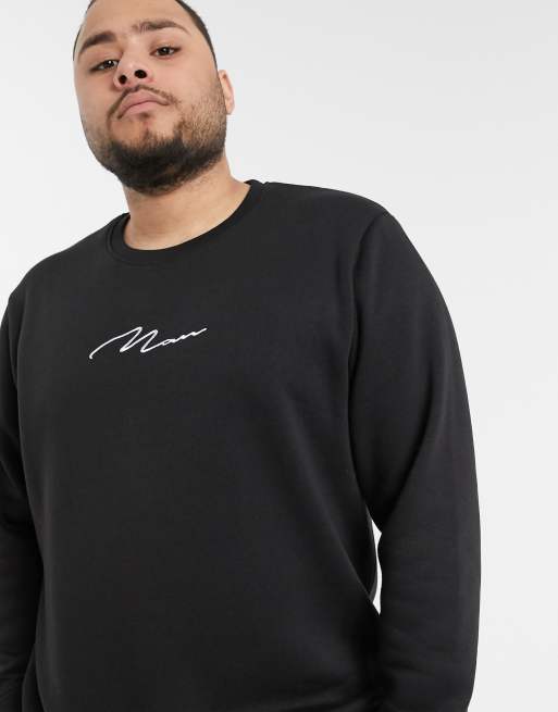 Boohooman Plus Size Man Signature Embroidered Sweat In Black