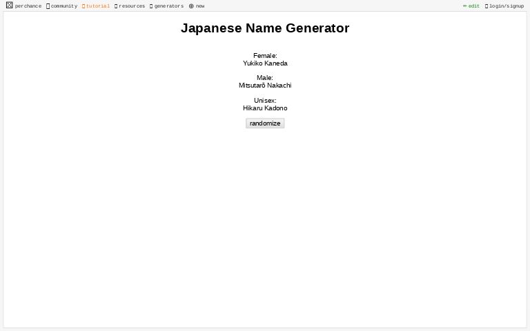 The japanese name generator can suggest you japanese names for your characters (for your own novels or games), your babies or anything else randomly.