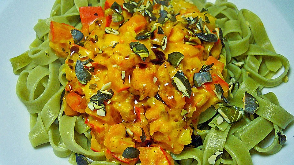 Pasta Mit Kurbis Und Kokosmilchsauce Von Chrissyell Chefkoch