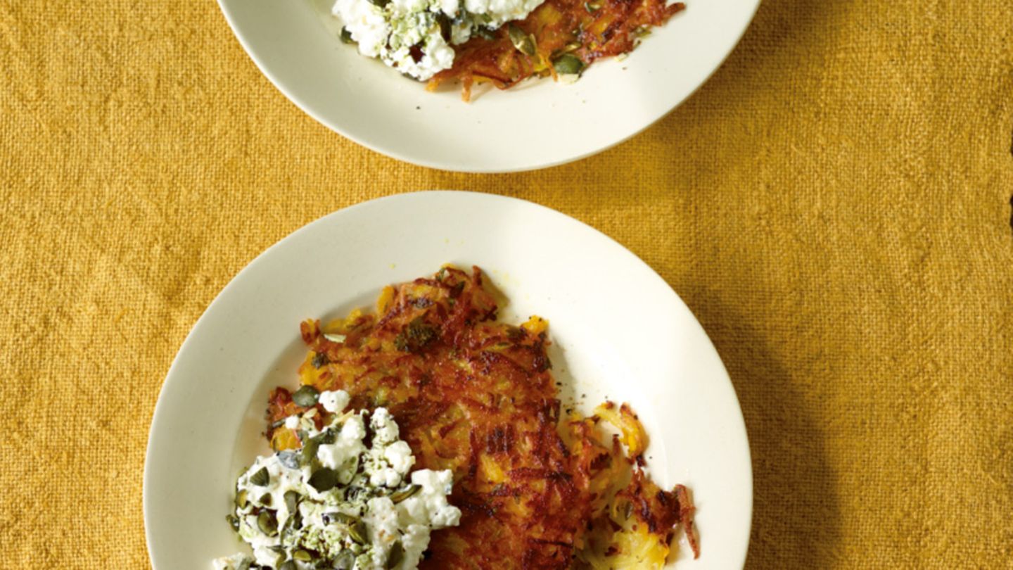 Kartoffel Kurbis Rosti Mit Saibling Und Meerrettich Rezept Essen Und Trinken