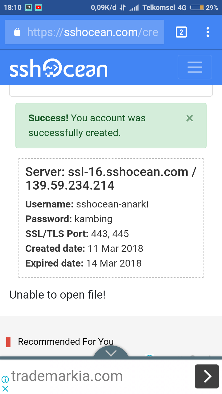 Cara Membuat Akun Ssh Di Situs Sshocean. .ssh udp proxy, ssh america, ssh singapore, ssh japan, ssh france, free ssh ssl, create ssh ssl/tls for free, 30 days high fast speed premium ssh server singapore. Ssh (secure shell) is a network protocol that is encrypted to run shell sessions or it can also be called a terminal (text based) safely, cannot be read by others. We'll sign up for a virtual private server from digital ocean, and then we'll set it up with the latest version of ubuntu linux, including setting up a user name and password for root. Provider high speed premium ssh and vpn account. Create fast premium vpn & ssh ssl/tls , server singapore, us, japan, netherlands, france, brazil with unlimited data and high speed connection. Последние твиты от sshocean (@sshocean). .free ssh ssl, create ssh ssl/tls for free, 30 days high fast speed premium ssh server singapore, shadowsocks, wireguard, us, japan, netherlands, france, indonesia, uk, germany. Sshocean.com is provider premium high speed ssh, stunnel (ssh over ssl/tls), openvpn we will so take your connection to private and make it full speed ssh connection with securely. See more of sshocean on facebook. Sshocean free ssh ssl, free ssh vpn, ssh udp proxy, free ssh ssl, create ssh ssl/tls for free, 30 days high fast speed premium ssh server singapore, shadowsocks. Provider high speed premium ssh and vpn account. The path to the ssh key to be used to connect to the host. Fast premium ssh account support video call, online games server singapore, japan, usa, netherlands, germany partners sshocean.com more ssh and vpn accounts worldwide server. Sshocean free ssh for 1 month, ssh ssl/tls, free ssh vpn, ssh udp proxy, free ssh ssl, create ssh ssl/tls for free, 30 days high fast speed premium ssh server singapore. Sshocean.com is provider premium high speed ssh, stunnel (ssh over ssl/tls), openvpn, squid proxy, shadowsocks and wireguard account with high quality server for our premium ssh account.